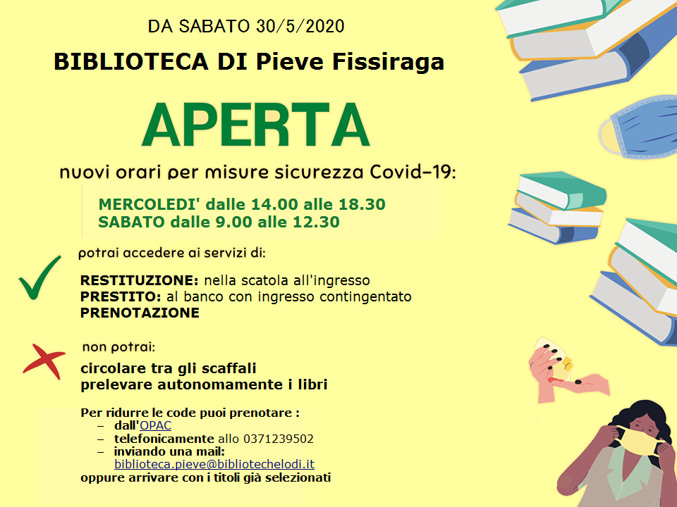 Si allega il volantino relativo alle nuove modalità di accesso alla Biblioteca Comunale.