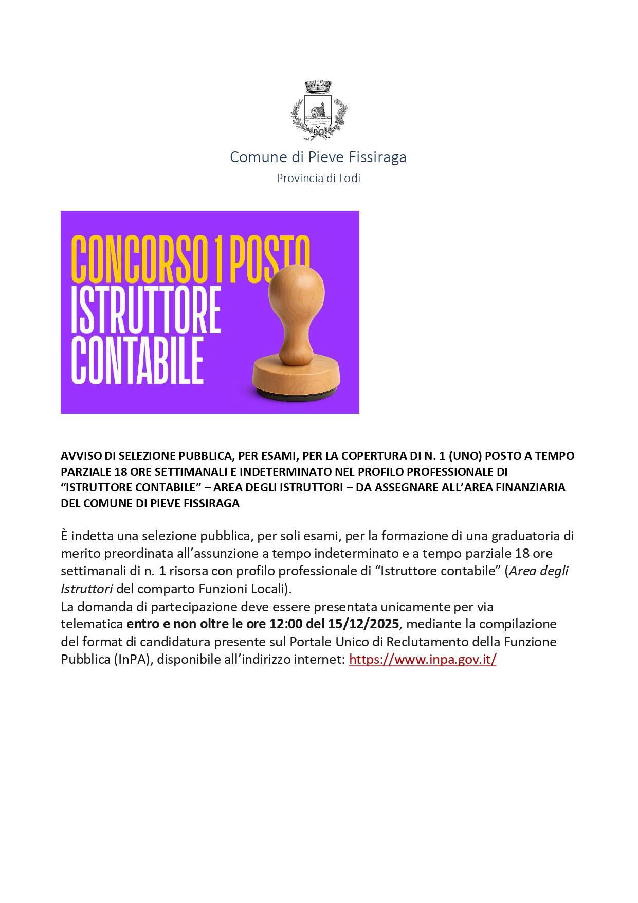 Scadenza 15 dicembre 2025 ore 12.00