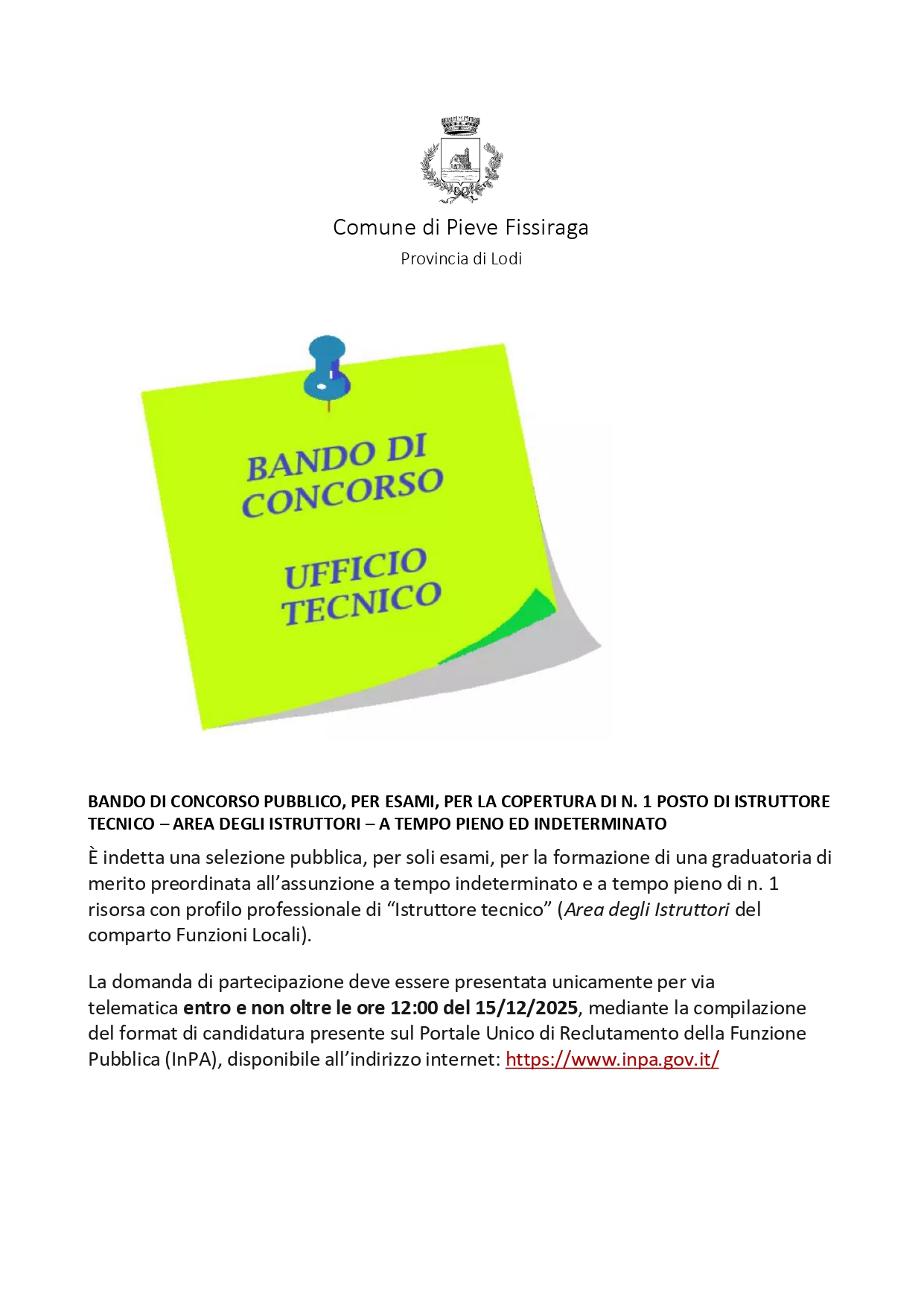Scadenza 15 dicembre 2025 ore 12.00